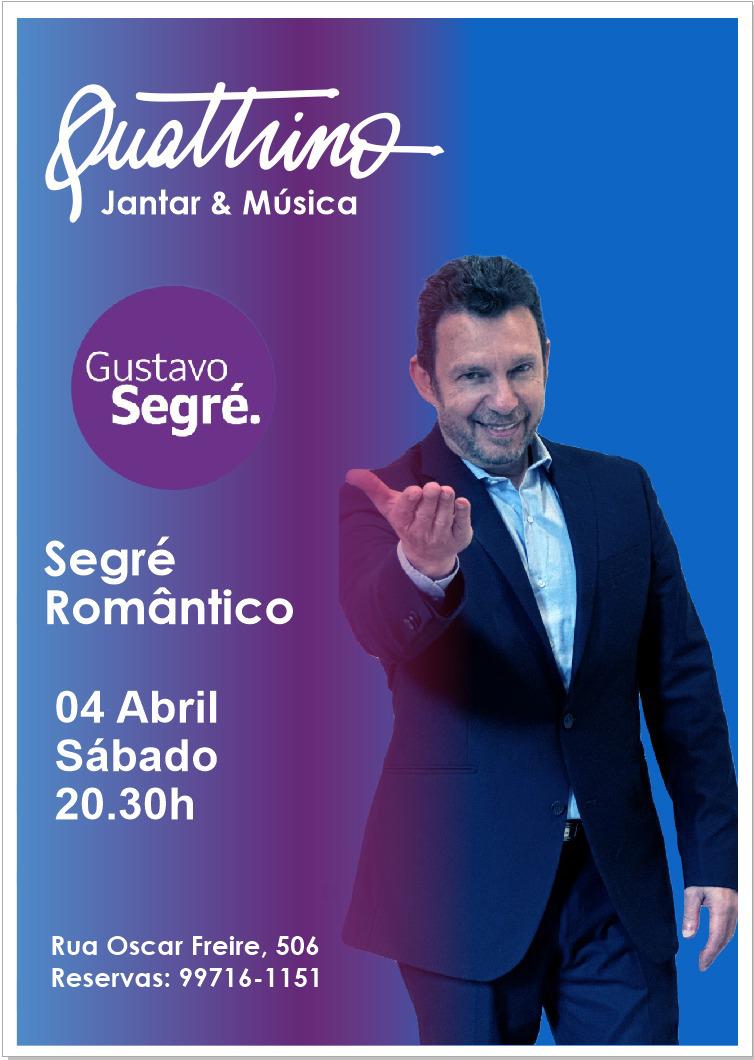 por Quattrino postado 03/03/2026 em Acontece, Destaques, Eventos, Novidades Gustavo Segré – sábado – 4/abr/20262026-03-032026-03-05https://quattrino.com.br/wp-content/uploads/2018/07/logo.pngQuattrinohttps://quattrino.com.br/wp-content/uploads/2026/03/img-20260305-wa0051.jpg200px200px 14 0 Jantar & música AO VIVO Gustavo Segré Segré Romântico 4 de abril (sábado) às 20h30 Postagens RecentesJR Falco – sábado – 25/abr/2026Ygor Czovny – sexta – 24/abr/2026Jantar de Pessach – quarta – 1/abr/2026Cecilia Rezende – sexta – 27/mar/2026